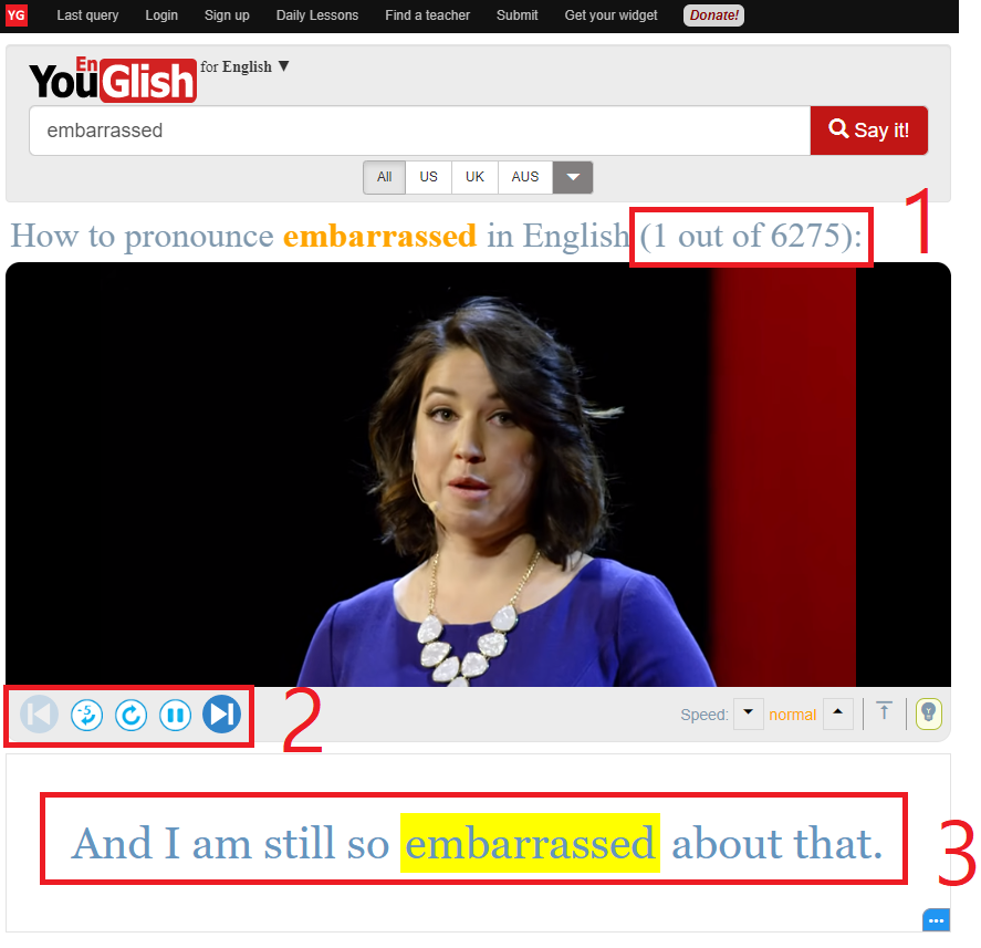 'embarrassed'로 검색을 해봤습니다. 총 6275개의 동영상이 검색되었습니다. 굉장히 많은 유튜브 영상들이 검색결과로 나오게 됩니다. 하나씩 들으며 다양한 사람들이 어떻게 발음하는지를 듣고 따라해봅니다.